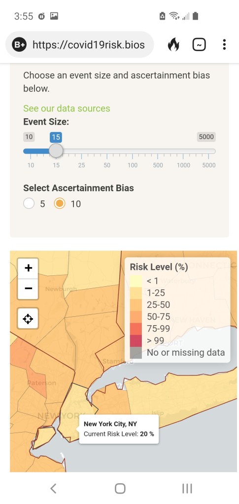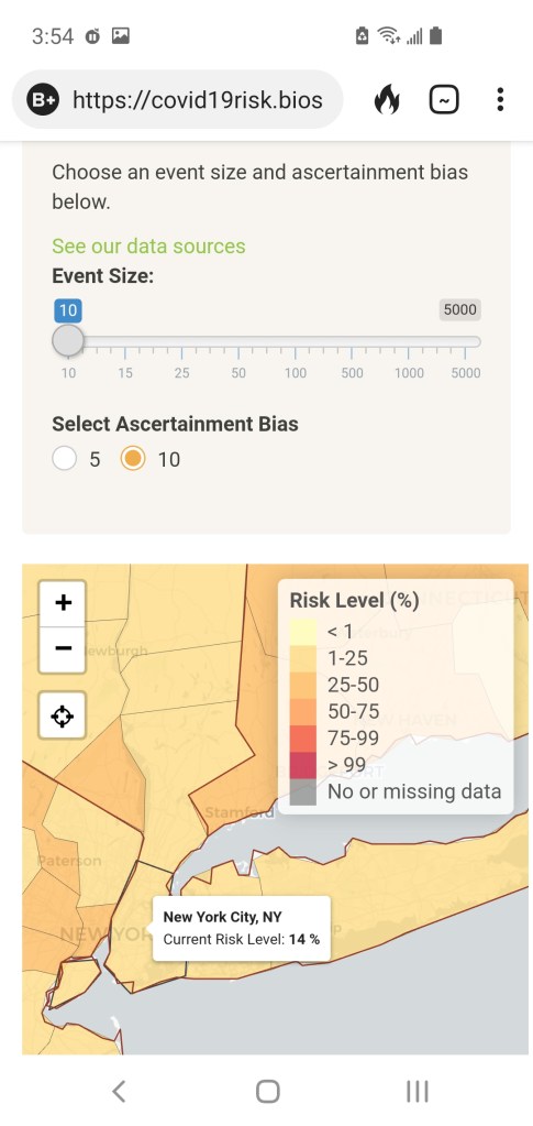 After coming across this article about a new tool being successfully peer reviewed, I went to test it out. at https://covid19risk.biosci.gatech.edu/ I ran 2 scenarios for NYC: