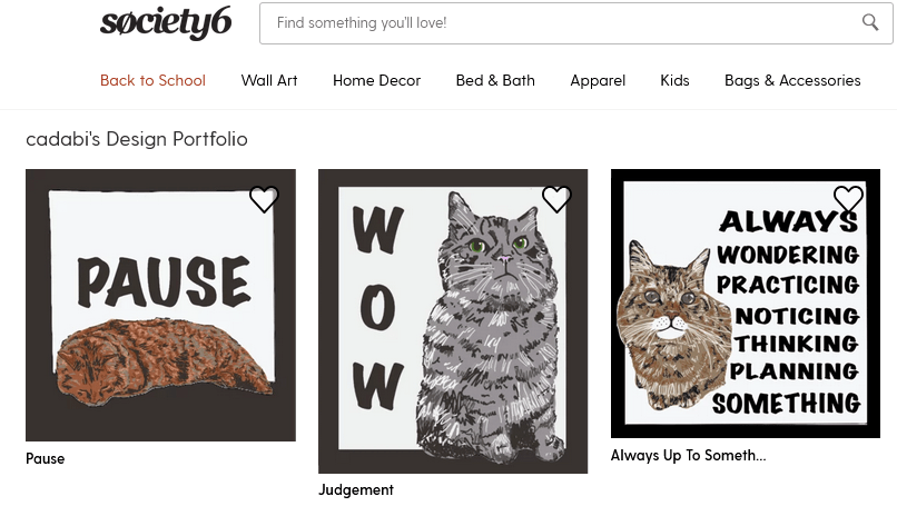 In need of a different creative task, I doodled some cats. Then put them in a web store at https://society6.com/abicadabi/designs.